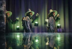 Undervejs i forestillingen, støder de tre venner på lidt af hvert. De både vandrer, sejler, fryser, udforsker og en masse andet genkendeligt for store og små. Hver gang de stopper op, suges vi ind i deres verden af magiske påfund. De kommer for eksempel forbi en spejlblank sø, som de spejler sig i, trækker lysende skibe henover, og går rundt i med de fineste lydeffekter af skvulpende vand. Selvom vi ikke forstår, hvad de siger, er vi aldrig i tvivl om, hvad de laver, da alle handlinger kan sanses via lyde, æstetik og let afkodeligt kropssprog.