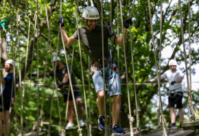 14 svævebaner er med til at gøre oplevelsen ekstra sjov. Her kan børn og voksne glide gennem trætoppene - blandt andet på en op til 120 meter lang svævebane over en lille sø. Derudover er der en cykelsvævebane, som er den længste i Danmark!