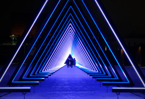 Træd ind i den imponerende lys -og lydinstallation, hvor hver af de trekantede, oplyste porte rummer en højtaler, der afspiller fragmenter af en samlet lydkomposition. I denne nye udgave oversætter værket naturens transformerende kraft til lys, gennem en undersøgelse af samspillet mellem eksistens og opløsning.