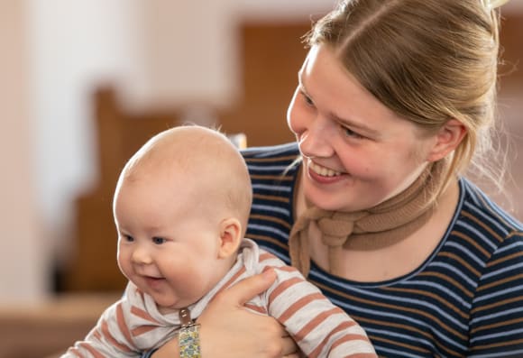 Babysalmesang er en musikalsk oplevelse i kirken for nybagte familier med børn i alderen 0-12 måneder, hvor alle kan være med.