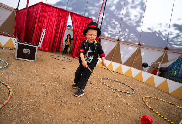 Prøv kræfter med cirkuskunster i cirkusworkshoppen, hvor I kan øve jer i at være ægte cirkusartister. I kan også møde klovnen Joey, der klovner og tryller på cirkuspladsen.
