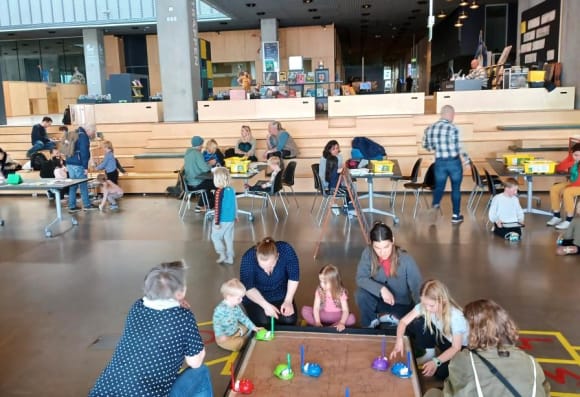 Vi leger en masse forskellige lege, så du kan prøve kræfter med flere teknologier og lege med alle mulige seje dimser og dutter. Du kan selvfølgelig også altid finde det populære LEGO Spike Essential sæt og bygge og programmere LEGO-modeller. Vi får også besøg af robotterne Blue-Bot og Glow and Go Bot, der er superlette at programmere.