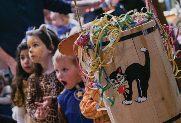Kl. 11.30 – Tøndeslagning på kirkens P-plads. Kåring af kattekonge og – dronning. Boller og varm kakao til alle. Find din sjoveste og flotteste udklædning eller maske frem og kom og vær med!