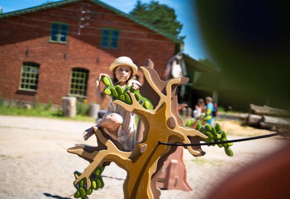 Oplev teaterstykker inspireret af Ole Lund Kirkegaards bøger, stil sulten med slushice og vafler på Hjallevad Marked, far vild i labyrinten, udforsk sløngelstien eller bliv cirkusartist for en dag. Alt dette og meget, meget mere på 1800 kvadratmeter stor legeplads for børn!