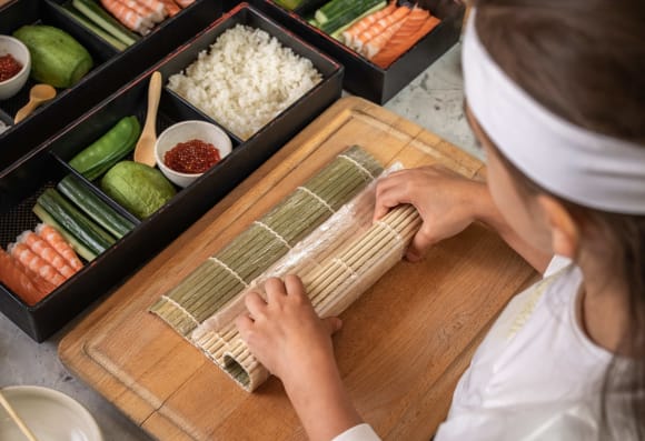 Kom og få fingrene ned i risene, rul din egen hosomakirulle, hak, snit og smugspis – og få smag for din helt egen hjemmelavede sushi, når vi inviterer til Kids’n’Sushi.