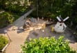 I sansehaven kan du mærke det bløde græs mellem tæerne, finde balance i zen-inspirerede sandhaver og lytte til det rislende vandspil, der skaber stemning og harmoni.