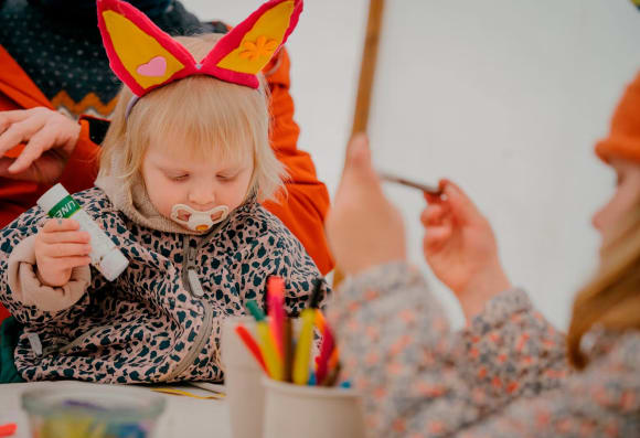 I kan også klappe de søde dyr eller møde den ægte påskehare, som kommer forbi og leger med.