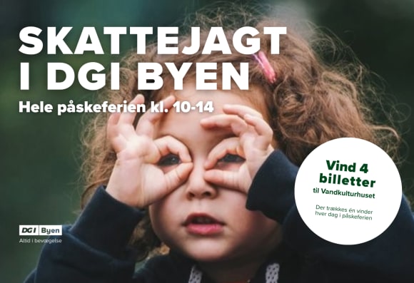 I Påskeferien fra d. 30. marts til d. 6. april inviterer DGI Byen dig og din familie på skattejagt – hver dag trækker vi en vinder af 4 billetter til DGI Byens Vandkulturhus.