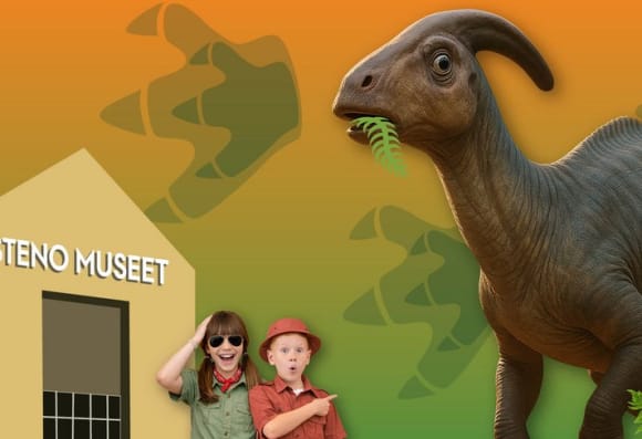 En kæmpestor dinosaurus fra fortiden er landet på Steno Museet. Nu skal den rejse tilbage til fortiden – men det kan den kun med hjælp fra dig! Hjælp den med at finde sine glemte ting, som er spredt rundt på museet
