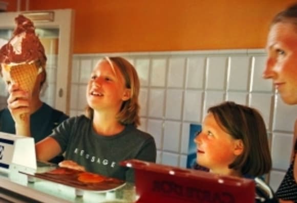 Jørgen Lydolphs Isbar er kendt og berygtet for sin gigantiske Lydolpher vaffelis, så folk står i flere meters kø op af Strandvejen. Og en Lydolpher er ikke at kimse af for ismaver: Tre store kugler Frisko-is, to flødeboller, masser af softice og til sidst drys på toppen. “Prøv den, hvis du tør”, som der står skrevet på væggen bag isdisken.