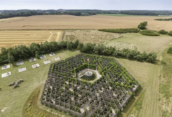 I parken finder man Trojaborglabyrinten, hvis historie går 3500 år tilbage i tiden. Man kan også opleve en nøjagtig kopi af den hækkelabyrint, som blev plantet i år 1690 ved kongeslottet Hampton Court vest for London. Så er der de moderne labyrinter. Efeulabyrinten var med fra starten i 2006, men er ændret og udvidet gennem årene. I Efeulabyrinten skal man finde poster og måske gøre sig fortjent til et flot diplom. Her gælder den gamle regel: hvad du ikke har i hovedet, må du have i benene. Hvis man tog alle de stolper og brædder, som er brugt til at bygge denne labyrint, så ville de række 18 km. I Taxilabyrinten skal man finde gennem labyrintens ensrettede gange, på samme måde som en dygtig taxichauffør finder gennem byens ensrettede gader. Væddeløbslabyrinten og Planetlabyrinten er for dem med god kondition.