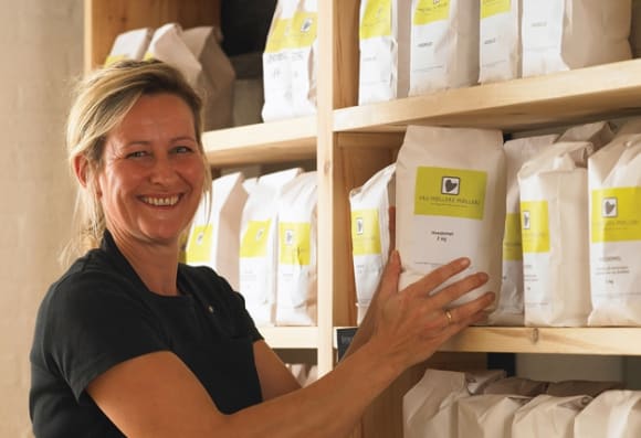 Vi hedder Bodil og Kim Møller. Vi mødte hinanden på Vejlby Landbrugsskole i 1987, hvor vi begge gennemførte en landbrugsuddannelse. Siden har vi fået tre børn. Vi bor på Bjergagerhougård, hvor vi foruden Fru Møllers Mølleri også driver et landbrug med 500 søer og opdræt af slagtesvin. Desuden har vi 200 ha jord med forskellige kornsorter, græsfrø og raps.