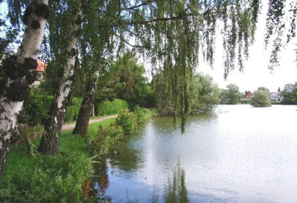 I Emdrup Søpark er der bænke, du kan slappe af på, mens resten af verden suser forbi i trafikken på Tuborgvej og Lyngbyvej ved siden af.