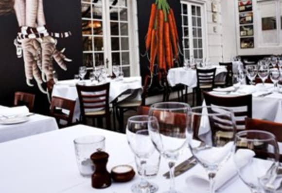 Nyd Moules Frites på terrassen om sommeren eller træd ind i læ glassalen med højloftede stuer til middag og vin om vinteren. På menukortet finder I også en børnemenu.