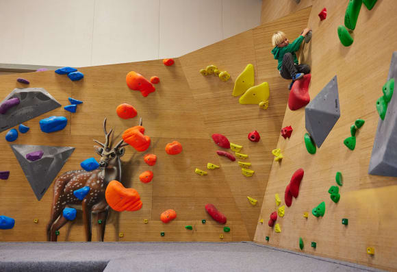 Med tanke på miljøet er klatrehallen bygget med bambusvægge og FSC-mærkede materialer, og caféens menukort er økologisk.