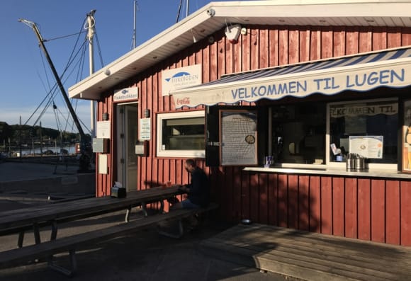 Fiskeboden i Espergærde havn er kombineret fiskeforretning og havnecafe. Havnecafeen, kaldet “Lugen”, har et godt udvalg af børnevenlige retter som fx. Fiskefrikadeller og Stjerneskud. Maden nydes udenfor på bænke og borde med udsigt til den hyggelige havn. På en kold dag kan man sidde indendøre i deres overdækkende udestue, der også har fint udsyn til havnen.