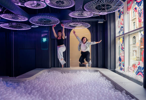 Dyk ned i en tidsrejse-lignende oplevelse i den farverige Darklight Street, oplev fascinerende øjeblikke i 99 Silber Balloons – et rum fyldt med svævende, reflekterende balloner – eller træd ind i dine drømme i Cavolo’s Dreamworld. IKONO tilbyder uendelige muligheder for leg, inspiration og meningsfulde forbindelser.