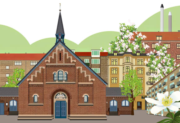 Kapernaumskirken, beliggende på Frederikssundsvej 45 i Københavns nordvestkvarter, er en markant kirke med en rig historie. Opført i 1895, er den den ældste kirke, som stadig er i brug, og som blev bygget af Kirkefondet i København. Kirken blev designet af arkitekten Valdemar Koch og er bygget i røde mursten. Den arkitektoniske udformning inkluderer en saddeltag med en ryttertårn og en facade mod Frederikssundsvej, der præges af rundbuede vinduer, en Lombard frise og et relief af en engel over hovedindgangen.