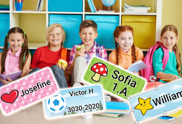 Navnelabels fås i mange flotte farver, mønstre og endda billeder! De er også helt enkelte at påføre. Praktisk, flot og nemt.